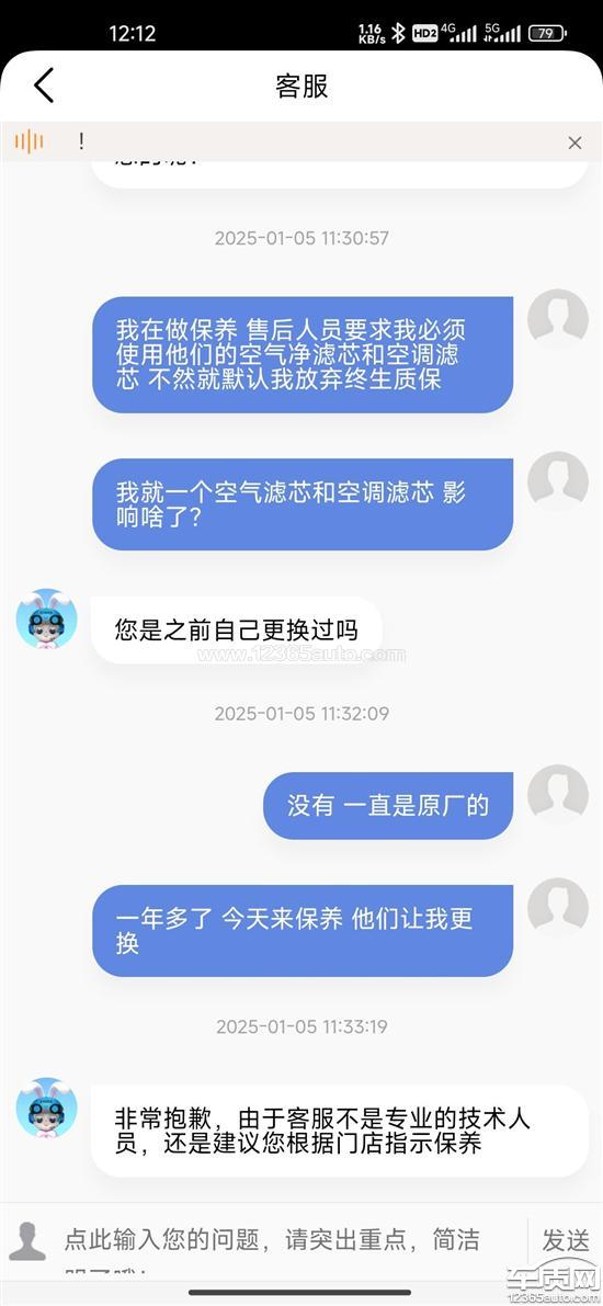 购车一年多了,今天到4s店进行保养,却被告知需要更换空调滤芯和空气滤芯了,但是不允许我自己更换空气滤芯和空调滤芯,但是必须使用门店提供的配件。如果我没有按要求更换和使用门店提供的配件,将会影响我整车的终生质保!