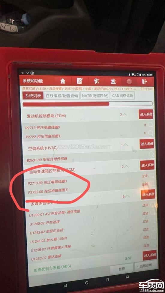 进口英菲尼迪Q70变速箱顿挫无法换挡