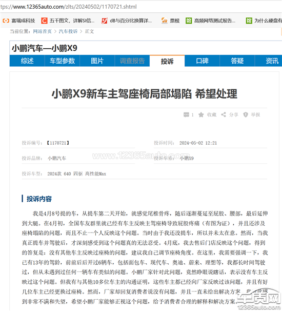 小鹏X9座椅填充太软造成身体不良症状