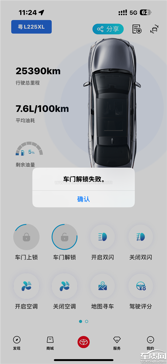 一汽丰田亚洲龙手机APP无法解锁 影响使用