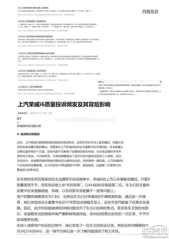 投诉车款:2017款荣威i6 1.5T自动互联网智享版20T