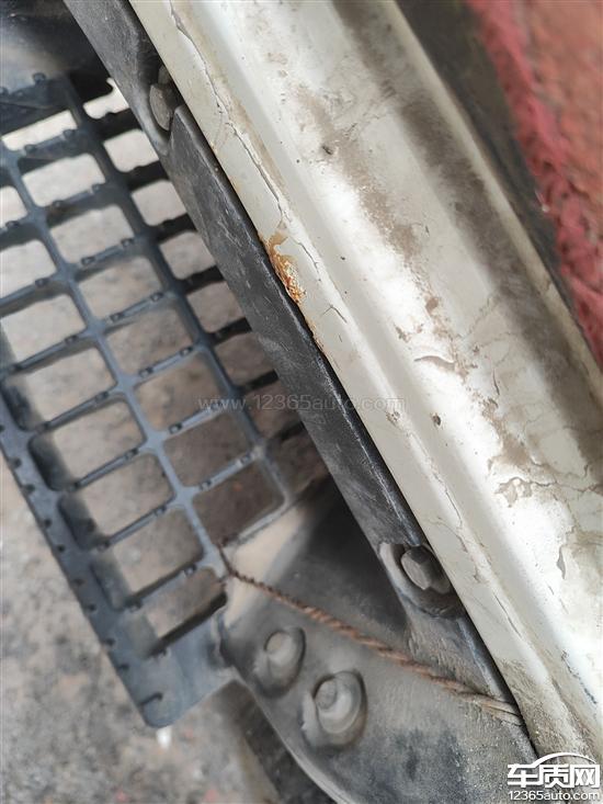 驾驶室右前轮眉生锈腐蚀马上要锈穿了。左前轮前方也开始腐蚀了。