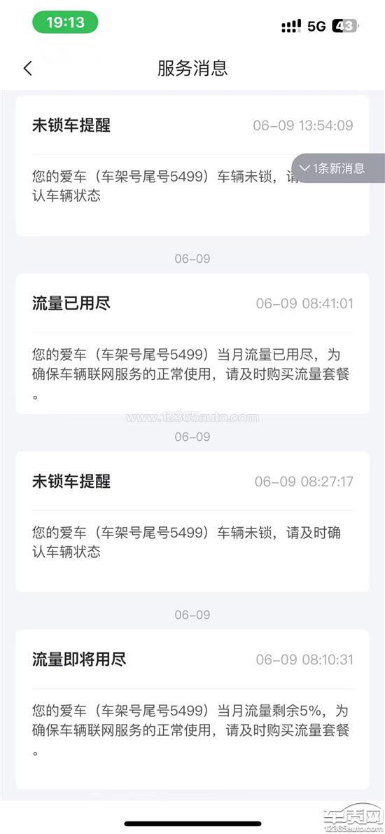 2025.6.9我发现车机没有流量,导致车机功能无法正常使用。车机流量一共为10个G,后台查询显示6月1号和6月2号已经使用了10个G,正常来说6月2号之后车机就肯定没有流量了,结果车机系统上显示6月9号没有流量,但是截至6月8号,后台数据显示流量已经使用了26.38G。目前车机系统语音召唤功能不行,导航功能也不行,就算车机连着手机的热点还是无法使用,这与承诺的基础流量免费大相径庭。6月9号我发现问题后电话联系厂家,厂家回答无法处理,询问嘉兴经销商店也没有结果。另外,调节音乐音量的快捷键也不行了。