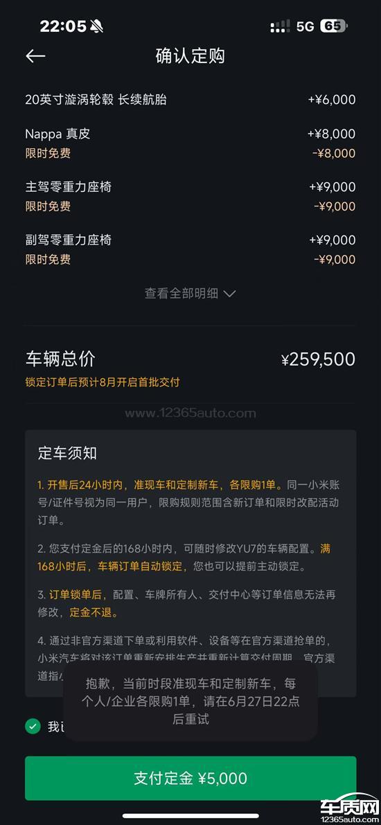 小米YU7 APP锁定订单后交车时间长