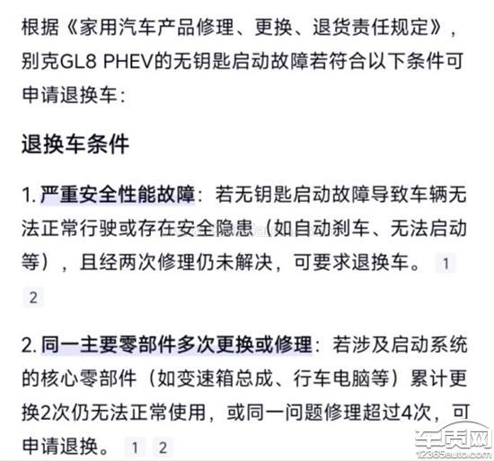 别克GL8新能源车辆无法启动 多次返修