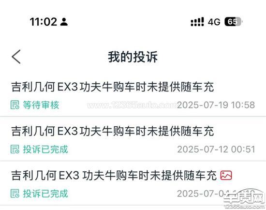 吉利几何EX3功夫牛购车时未提供随车充