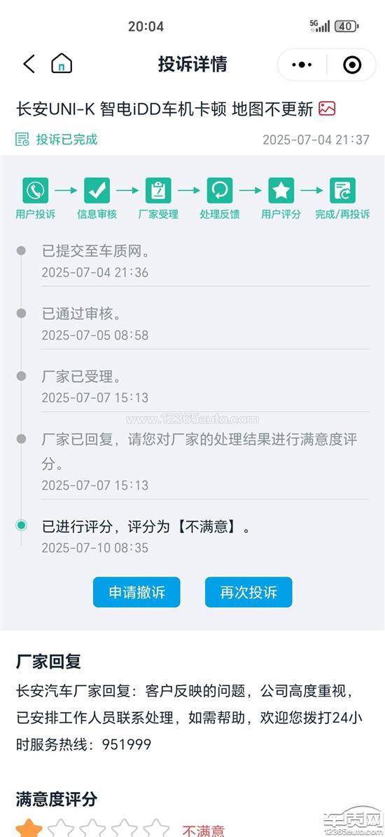 长安UNI-K 智电iDD车机卡顿 地图不更新