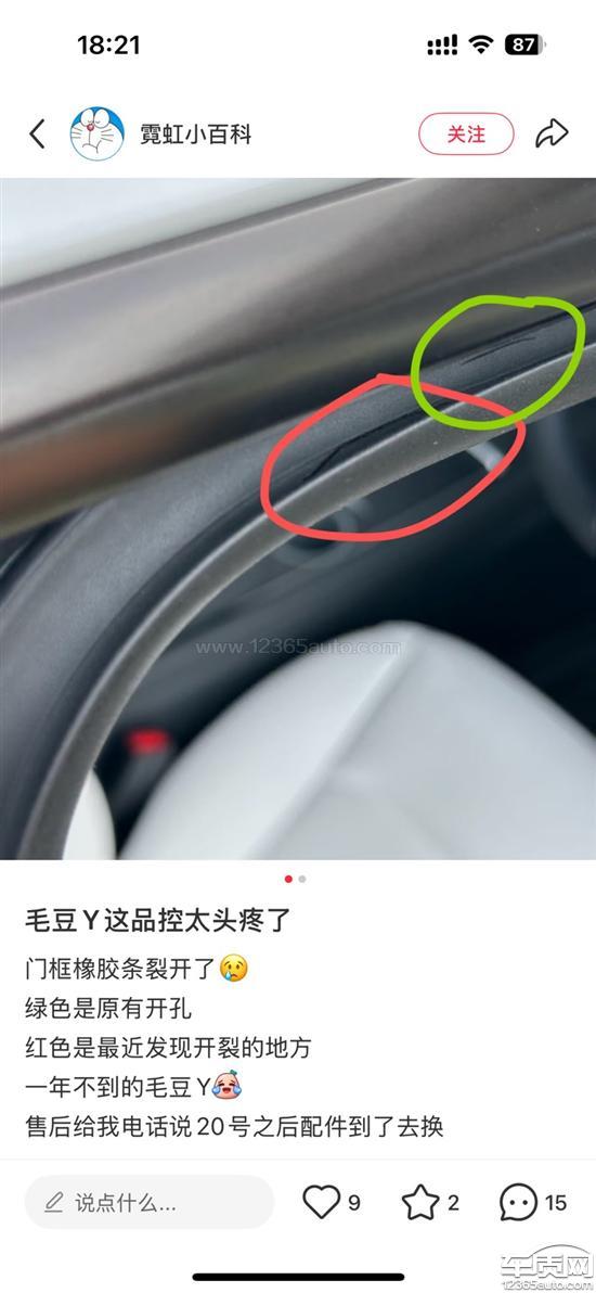 上个星期一发起投诉,至今没有任何回复,只有模版式的留言,距离该问题的投诉已经一个月多。一直都是我打400电话在沟通,大企业太强势了,作为特斯拉车主对于这样的服务态度非常失望,我相信细节会决定成败的。刚刚看到投诉完成,我又主动打400电话,答复就是人为原因。我在小红书公众平台看到特斯拉的车像我这种情况比比皆是,都可以给予质保,(后面4张是我截图别的车主同一情况,只能上传4张图片),由于我没有地下车库又没有贴车窗膜,可能老化开裂的更快,这属于设计缺陷,没有考虑到密封条出厂时拉一个口,在高温暴晒后关开门会加速这个口的扩大,在此申明:如果这个开裂是车主人为损坏的,下次开车必出车祸。