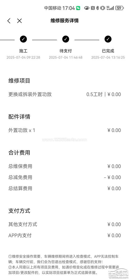 车辆为2024年12月6日生产,于2025年2月18日接到官方电话,要求车辆返厂检测电池压差,随后更换电池模组,小鹏售后讲不清更换了什么模组,2025年6月功放损坏,南京江北小鹏售后无法检测出漏水点,更换了功放,要求三电和全车质保延长一年,售后不同意,要求处理解决。