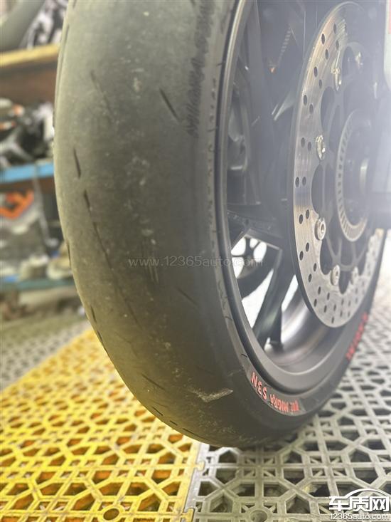 车子正常购买,正常保养、正常使用11000KM后,正常骑行回家途中发现发动机部位传出明显的哒哒异响,发动机在转速3000转/分钟时异响明显、刺耳。反复测试后确认明显异常响声。轮胎磨损异常,前轮左侧磨损见“钢丝”了,右侧正常,后轮整体正常。
