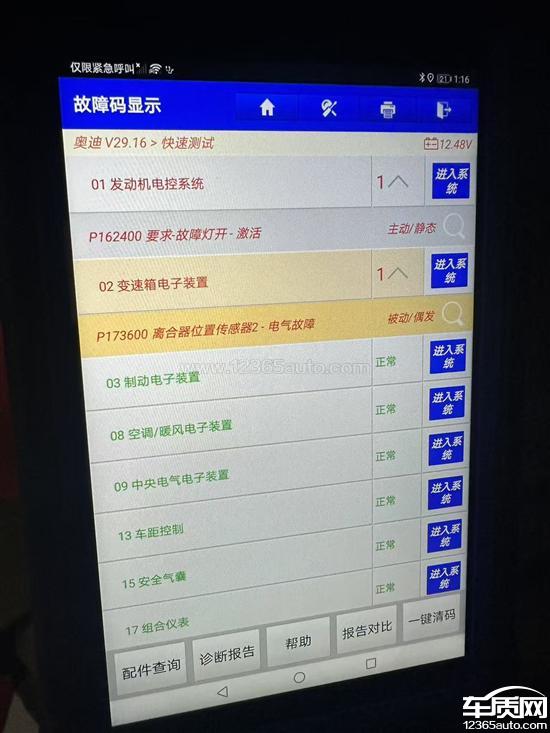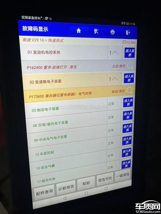 一汽奥迪Q3变速箱故障灯报警 挡位缺失