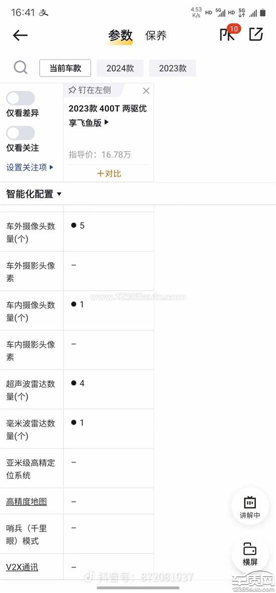 星途瑶光厂家虚假宣传减配毫米波雷达