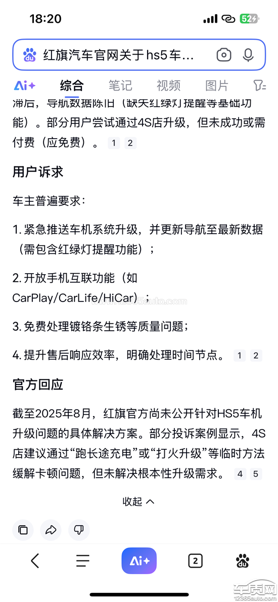 一汽红旗HS5车机版本老旧 系统不能升级