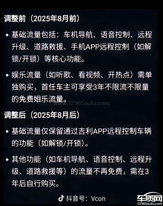 2023年9月份购车时,销售告诉我吉利汽车的基础流量包含语音控制,地图导航,自带软件的使用等,娱乐流量为下载第三方软件使用产生的流量,现在篡改了基础流量的使用范围仅包含远程控制。博越L的使用都在中控屏上,没有物理按键,难道我开车过程中必须花钱才能享受到一些车子本身必须的功能?这车难道是远程驾驶吗?不需要车主开?出了事SOS时还得先充钱才能被救?这是一家精致利己以吸血为生的企业,一切以剥削车主权益为目的的企业,这种企业不保障车主的合法权益,必须受到惩罚。