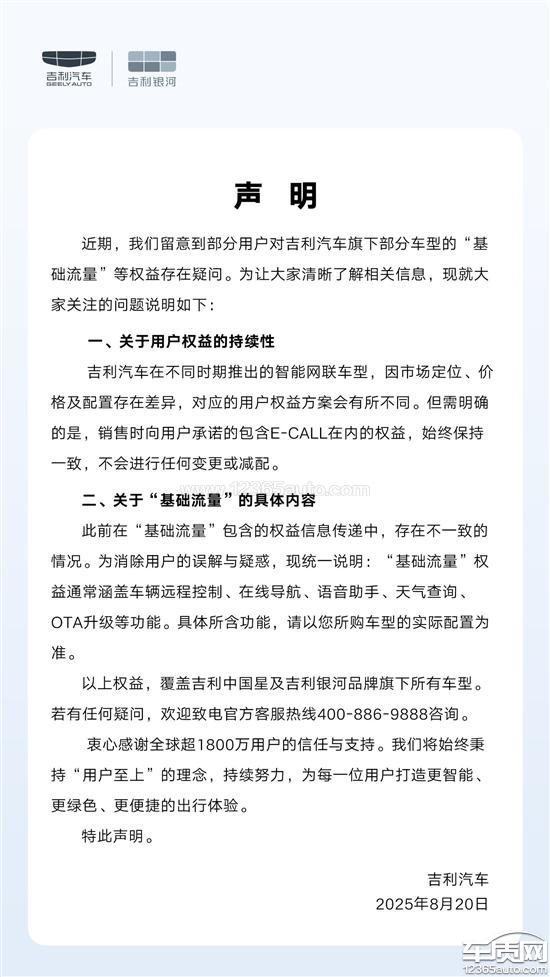 之前15号投诉完,20号改了销售时向用户承诺的包含E-CALL在内的权益,始终保持一致,不会进行任何变更或减配。而且没过两天了,又更改了SOS权益对应到的年限与对应车辆的流量套餐包年限一致,套餐包年限到期即SOS服务年限到期,后续需自行续费使用。你们吉利是当我们当猴耍是吗。