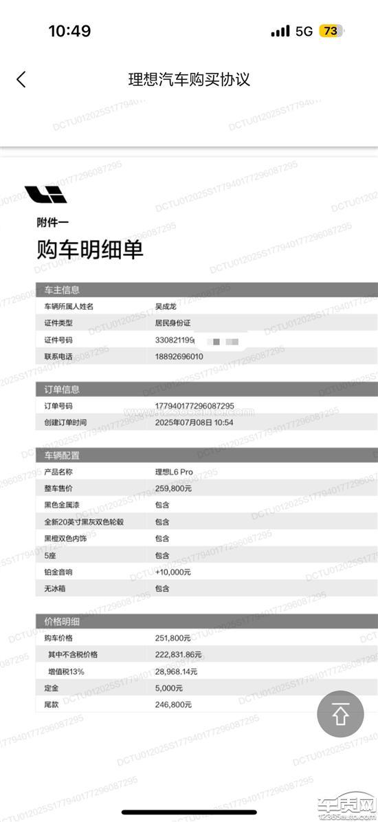 投诉车款:2025款理想L6 Pro 智能焕新版