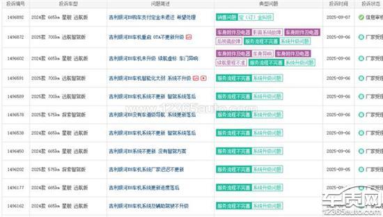 吉利银河E8车机系统不更新 车门异响