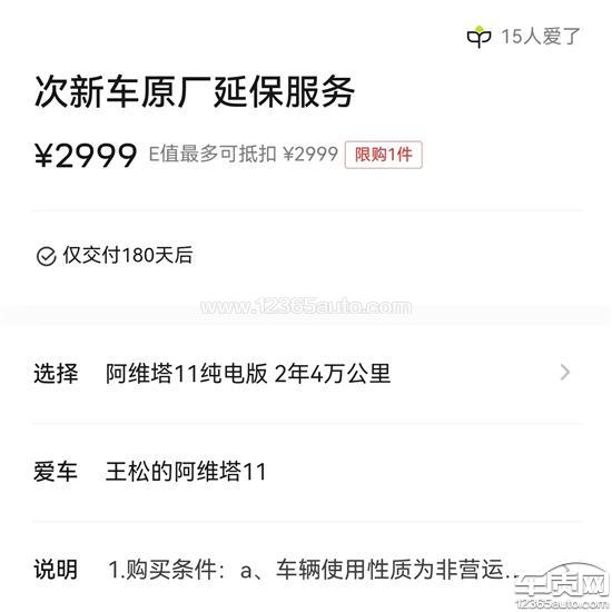 阿维塔11厂家推出延保服务 背刺老车主
