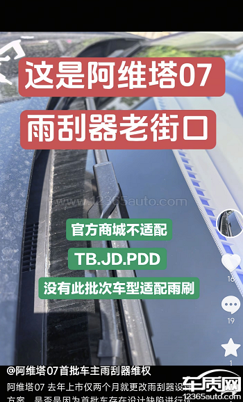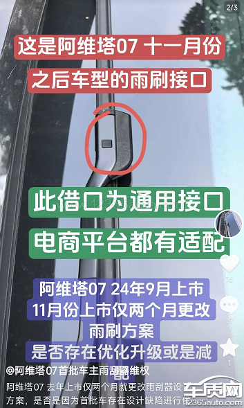阿维塔07雨刮接口双标 无法自由选择