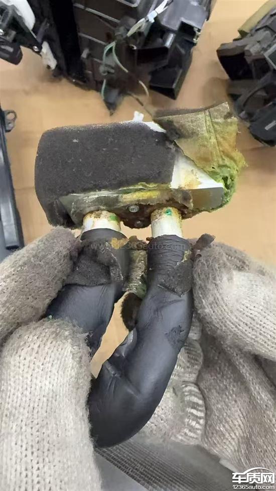 空调不制冷,4S店检查发现是空调蒸发箱外接口处铁片腐蚀导致制冷剂泄漏。第1张图片,是我本人的车拆下来的零件腐蚀情况,腐蚀很严重。第2张图片,同一个4S处理的其它车的发生同样问题车更换的下来的零件图片,还有其它车同样发生类似的现象,图片没有上传,腐蚀程度类似;图3是新更换的零件。图1.2被腐蚀的零件原材质是铁片,这个在使用过程中是会不断腐蚀的。图3新更换的零件已经将这个位置的铁片改为铝片,这样可以避免生锈腐蚀。长安马自达厂家以过保为由(3年或者10万公里),需要用户自费承担维修费用。本人认为这个是厂家设计缺陷,材质不过关。这个腐蚀在用车过程中会不断加剧的,而且这个蒸发箱在车辆内部,平时的保养或者维护根本发现不了是否有发生腐蚀。同时这个不是受到外接碰撞、涉水或者被其它腐蚀性物质污染导致,非人为破坏问题,只是在正常使用中发生的。这量车在上海弘绅这个4S店购买和保养的。诉求:需要厂家承担全部的维修费用。