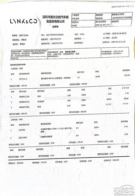 投诉车款:2017款领克01 2.0T自动四驱劲Pro版