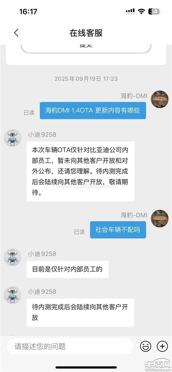 比亚迪海豹OTA未推送哨兵模式 要求处理
