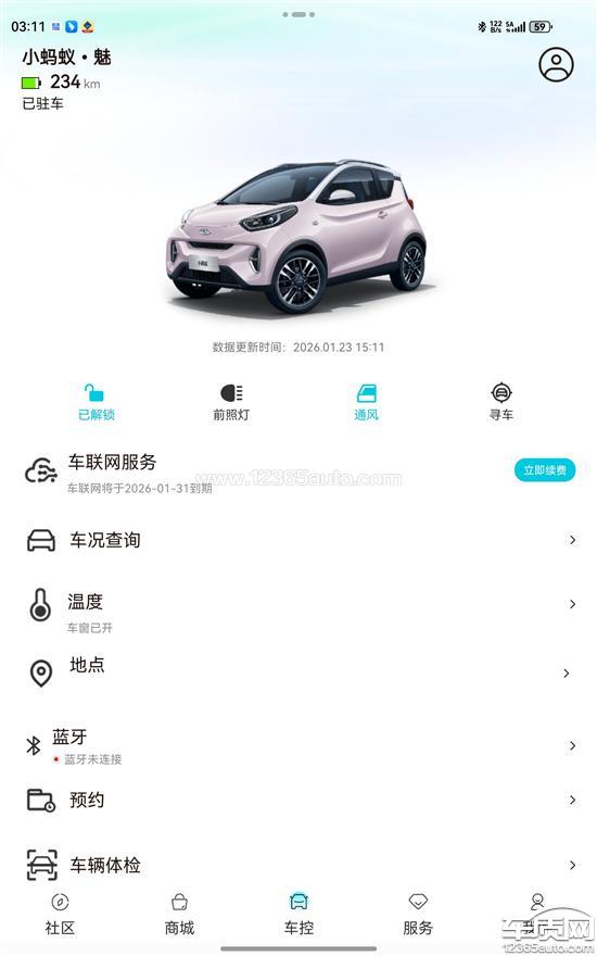 奇瑞新能源小蚂蚁车机流量停止使用