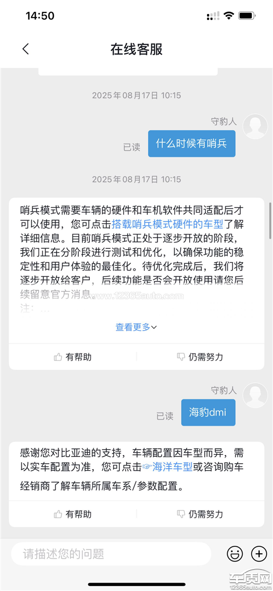 比亚迪海豹未按承诺推送哨兵模式功能