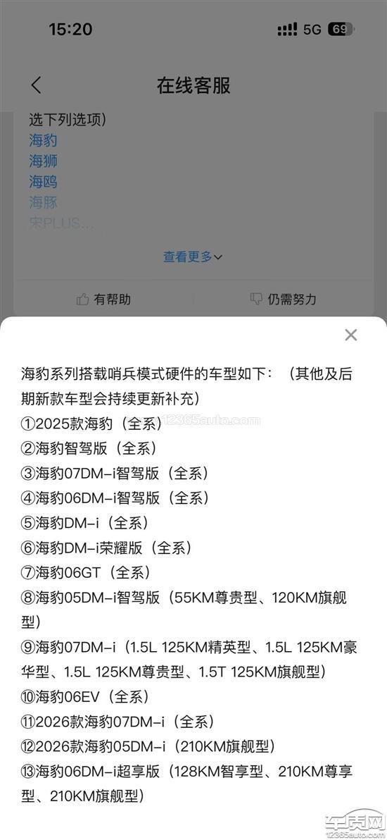 比亚迪海豹厂家未推送哨兵模式功能