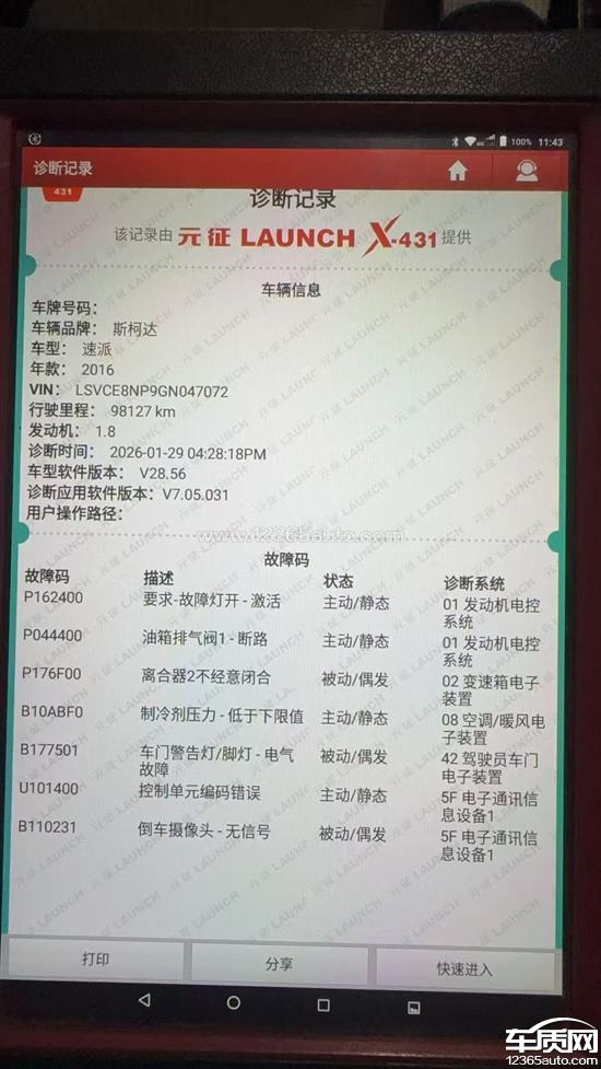 投诉内容:本人车辆为斯柯达速派2016款1.8T车型,,目前行驶里程98127公里。近期车辆频繁出现故障提示,经使用专业诊断设备(元征LAUNCHX-431)检测,发现存在多项故障码,其中尤为严重的是:变速箱机电单元故障(故障码P176F00:离合器2不经意闭合),该问题已严重影响行驶安全,表现为无法挂倒挡,2、4、6档等现象。经了解,上汽大众旗下车型(含斯柯达品牌)所搭载的变速箱机电单元存在批次性质量缺陷,属于常见通病。本人身边已有同品牌车主通过投诉维权方式,成功免费更换机电单元。由此可见,该故障并非个例,而是厂家产品质量问题所致。现要求厂家免费检查并更换变速箱机电单元,彻底解决该通病问题。望厂家正视产品质量问题,积极回应消费者合理诉求,尽快安排处理,避免安全隐患进一步扩大。