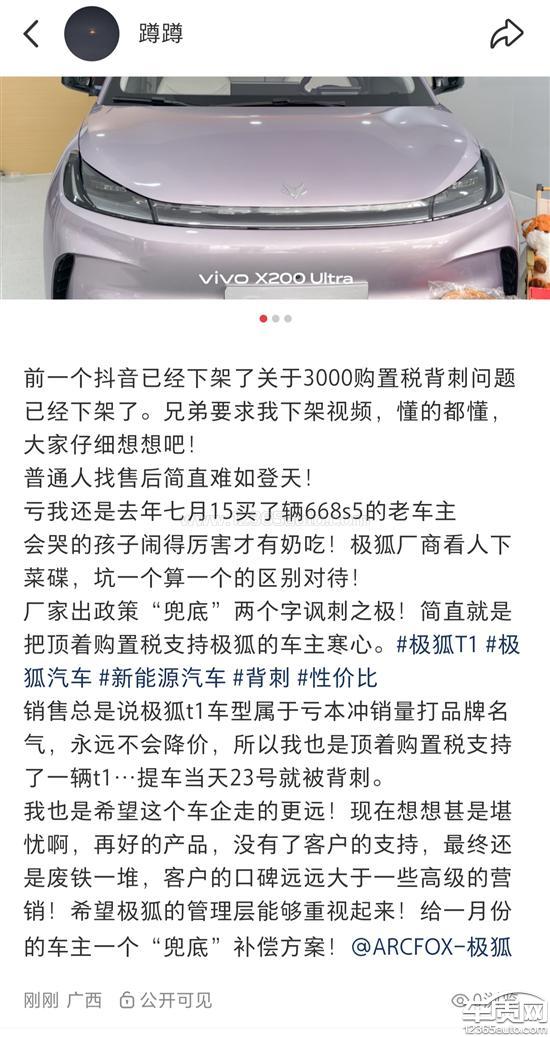ARCFOX极狐T1销售隐瞒购置税补贴政策