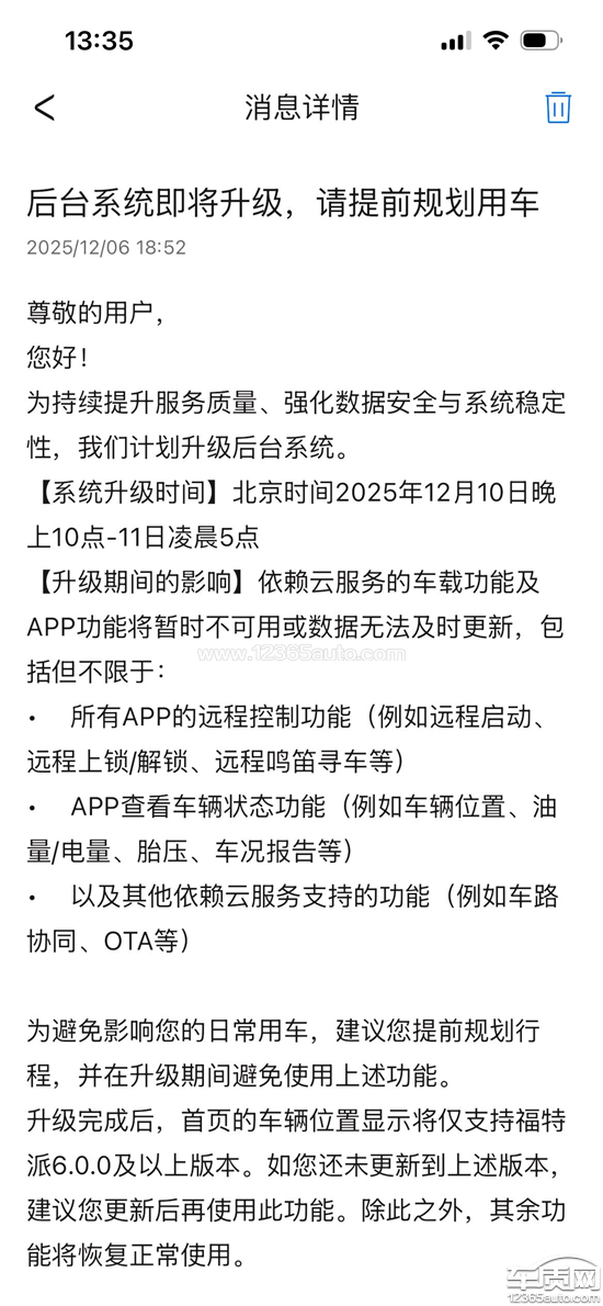我于2025年12月6日,EVOS车机OTA系统升级后(自动更新),对我车辆造成了网络通讯模块损坏,不可正常使用。整车现在无网络,车机娱乐功能、导航功能、SOS救援系统,以及手机互联、远程功能等完全不能使用。我自行去4S店检测后,被告知需要自费进行维修、换新模块(下方截图附有OTA更新内容:升级内容为优化车载通讯模块,以及支持4G网络下的紧急呼叫系统。另升级期间的影响:依赖云服务的车载功能及APP功能将暂时不可用,或数据无法及时更新。现我车出现问题,基本就是以上的升级期间的影响)。另经过我资料查询及本次调查,福特本次推送的OTA系统升级版本对EVOS以及蒙迪欧22-25款老车型都有部分同问题发生,不是个例。现我的诉求就是对我车进行维修或更换网络通讯模块,以上两种方案前提是都保证能恢复车机已损坏的一切功能。