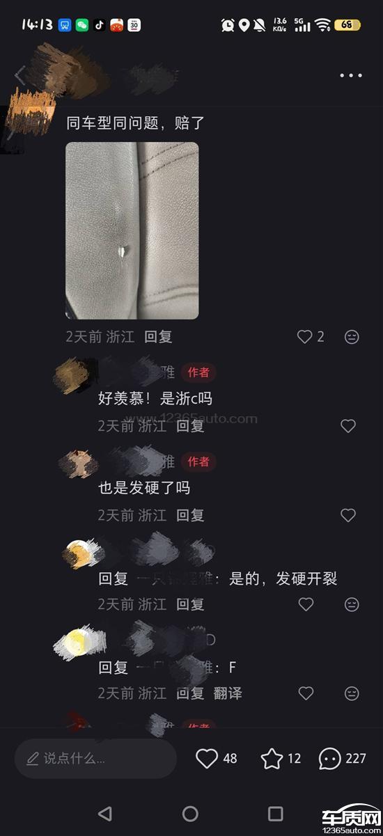 座椅有变硬开裂迹象不属于质量问题吗?只有主驾驶位有,其他都没有。座椅不就是放着坐的吗?不做就不会出现这种问题了?还有4s店说用清洁剂腐蚀,我车三年多都没洗过。还有嘉兴那边同车型同问题都直接赔了,怎么温州就不赔了,区别对待吗。