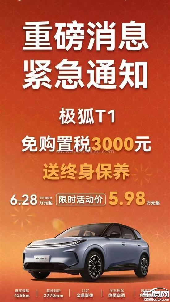 ARCFOX极狐T1购车政策变动 变相降价