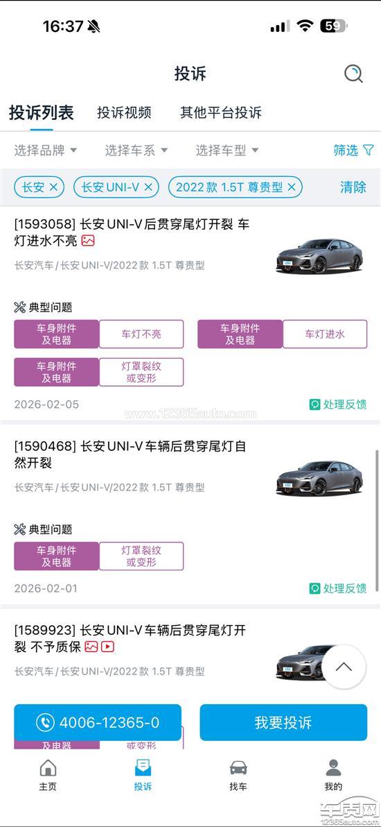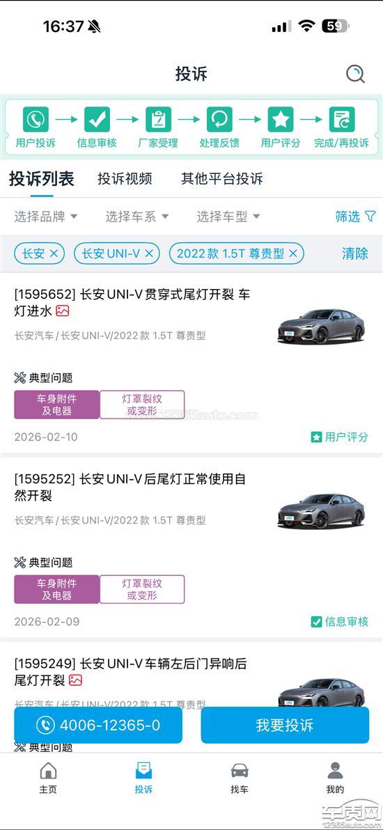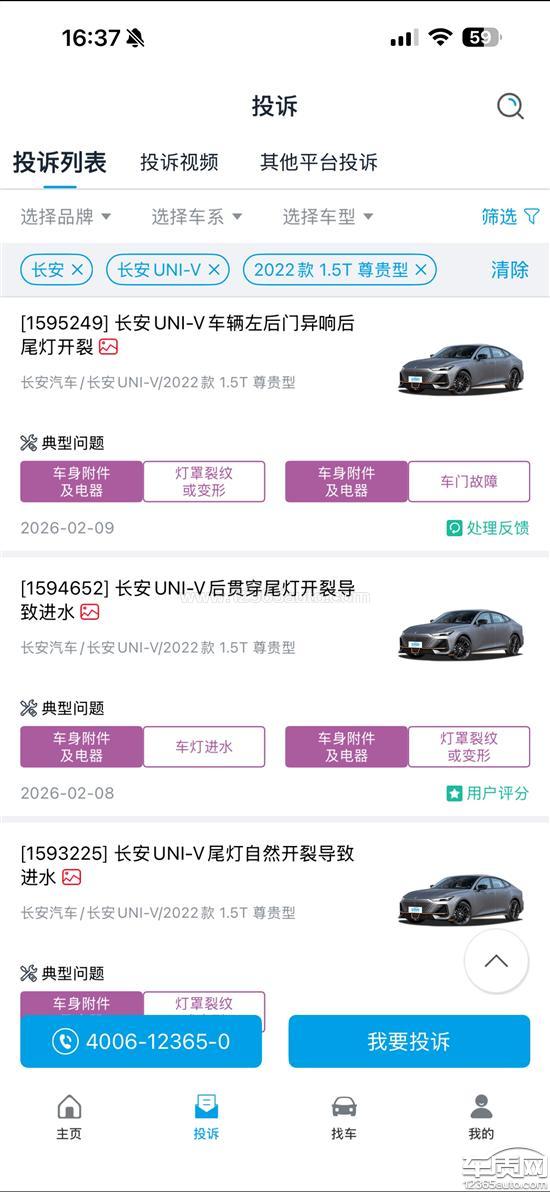 投诉车款:2022款长安UNI-V 1.5T 尊贵型