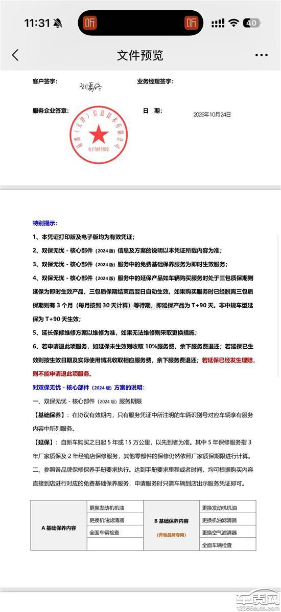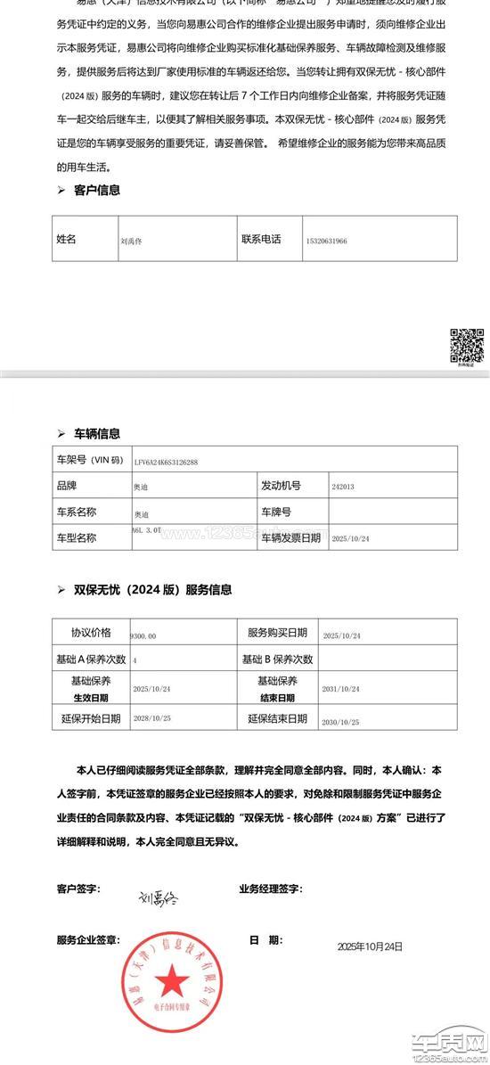 一汽奥迪A6L经销商不退延保 合同写明可以退