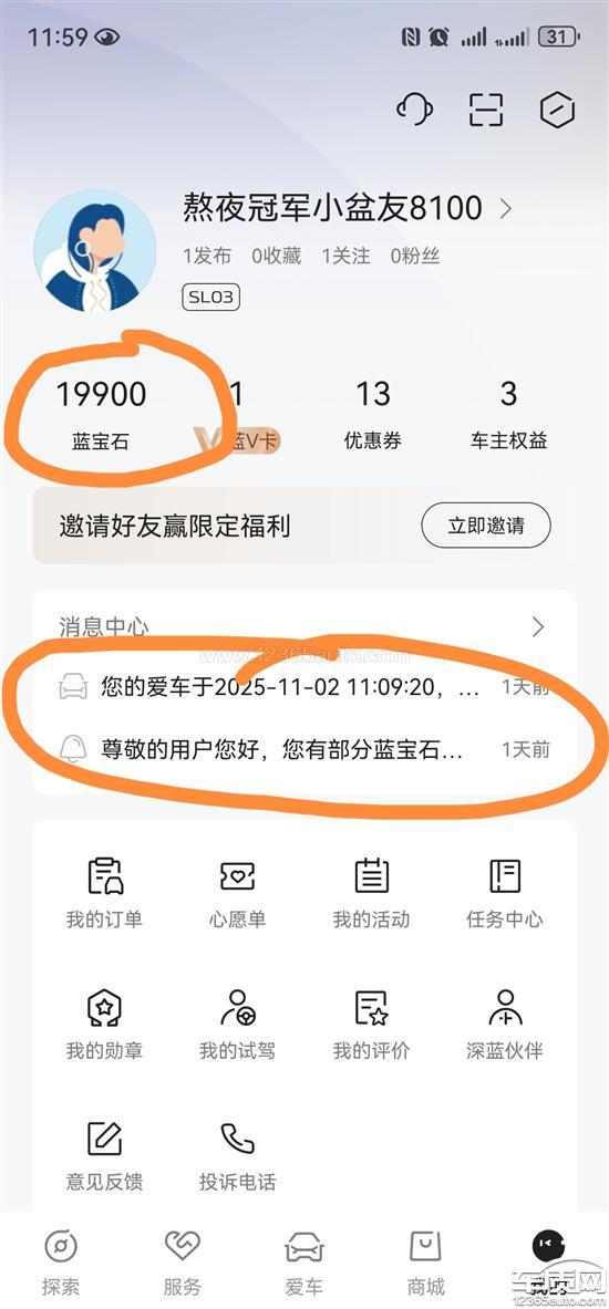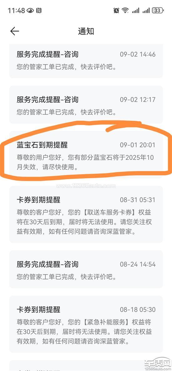 深蓝SL03蓝宝石积分 到期提醒方式不明显