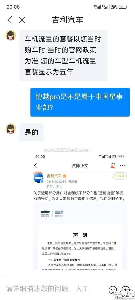 厂家回复称“销售时向用户承诺的包含E-CALL在内的权益,始终保持一致,不会进行任何变更或减配”。对此,我们提出以下疑问:1.吉利官网博越PRO配置单明确标注运制、导航、ECALL(SOS)等功能为标配,4S店提供的所有单据文件及说明书均未提及五年免费流量,但五年期满后,这些标配功能便无法正常使用,沦为摆设。既然是标配,为何还需额外付费才能享受相关服务?2.销售时承诺的用户权益不会变更或减配,若标配功能无法使用,是否属于权益变更或减配?3.请吉利官方解释“标配”二字的具体含义及其定义标准。4.吉利曾发布说明提及提供基础流量,但客服电话却表示无此服务,自身发布的信息前后矛盾,请予以澄清。恳请吉利厂家针对上述问题给予正面、明确的答复,避免敷衍重复。