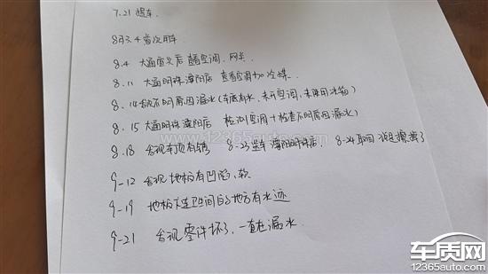 问题类型:车身附件及电器(车身漏水)