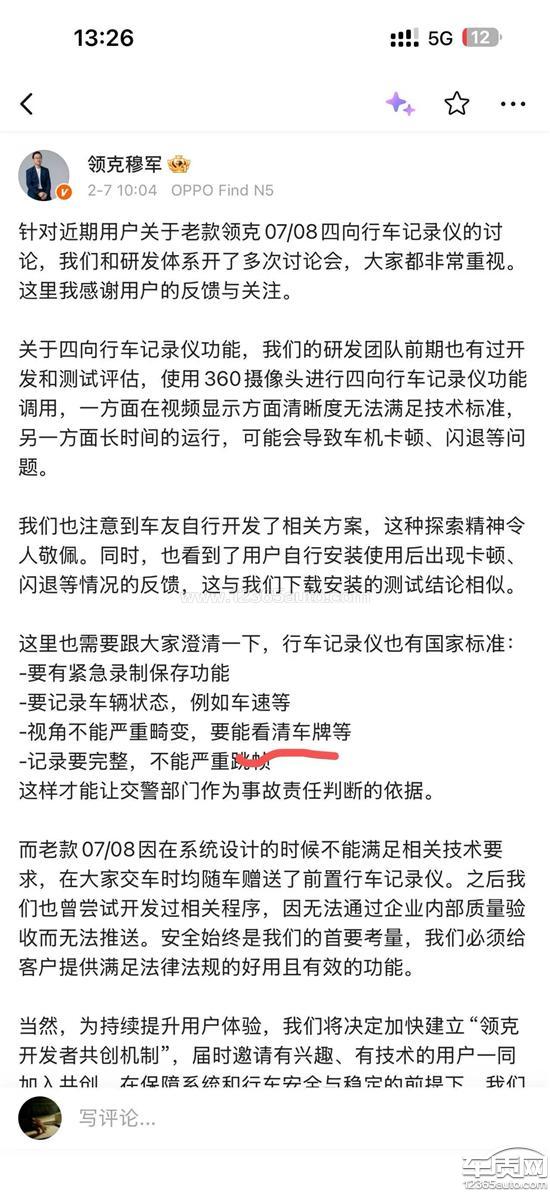 领克Z10车机系统未升级 无四向行车记录仪