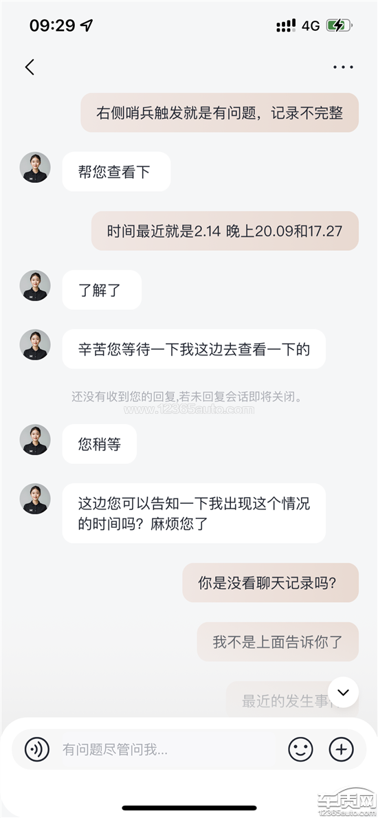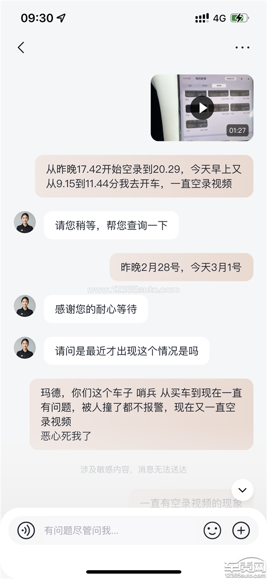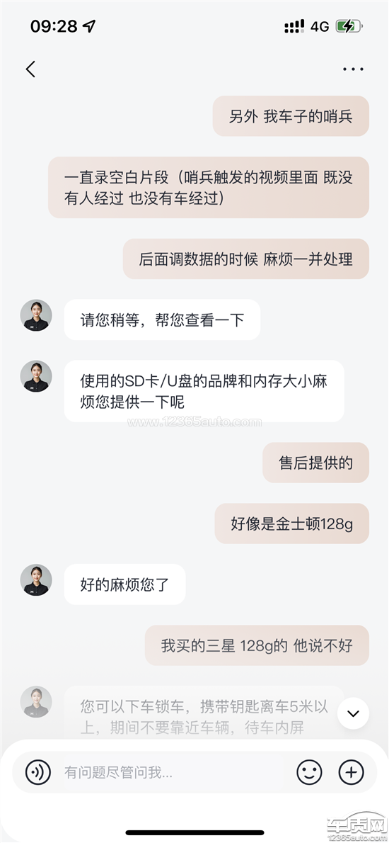自8月份购车之后,本人发现车子的哨兵一直存在触发异常的情况(空录或者不触发),期间被隔壁车子开门杀也未触发哨兵提醒。与4S店线下和线上客服沟通,反复上传视频和更换U盘,来回进站维修不下四五次,确认哨兵存在不触发的问题,但空录视频的问题一直无法得到解决,严重影响本人车辆使用和安全。