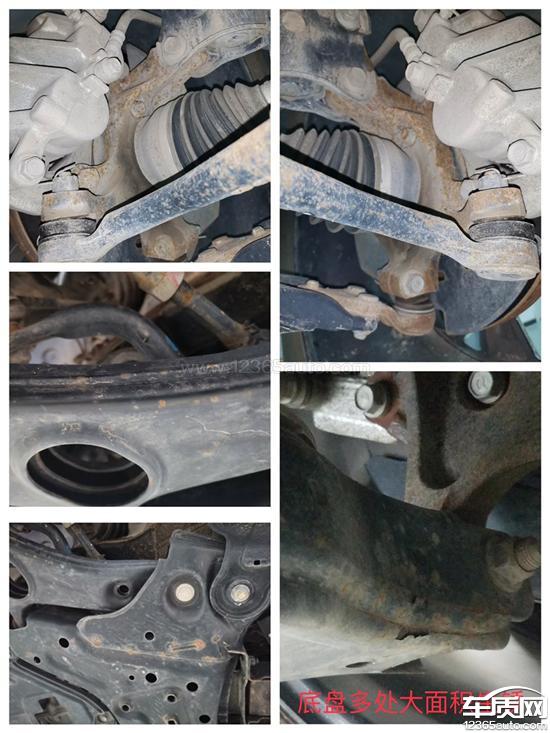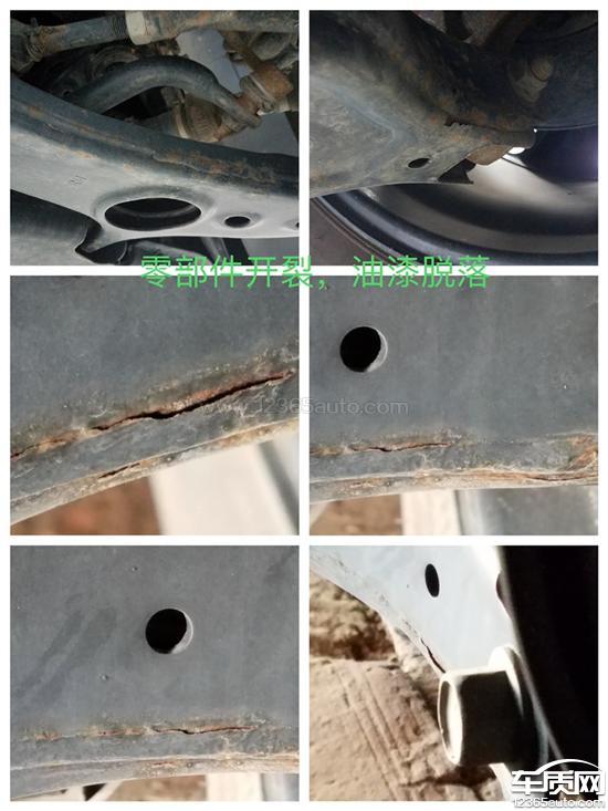 问题类型:轮胎(开裂)、前后桥及悬挂系统(减震器生锈)、车身附件及电器(车身生锈,轮毂问题)、服务态度(不解决问题)