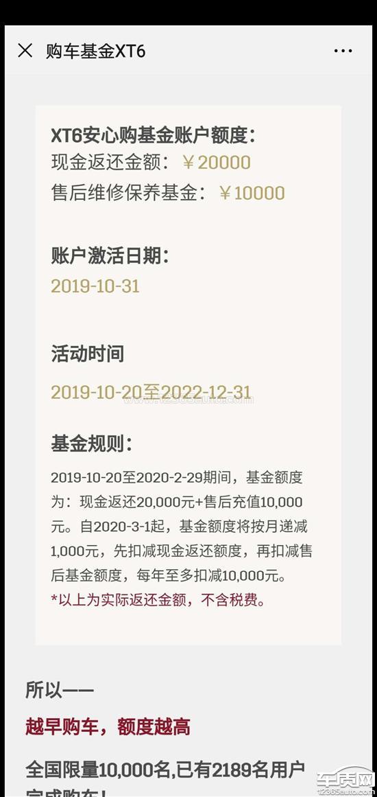 凯迪拉克XT6安心购基金一直未返还