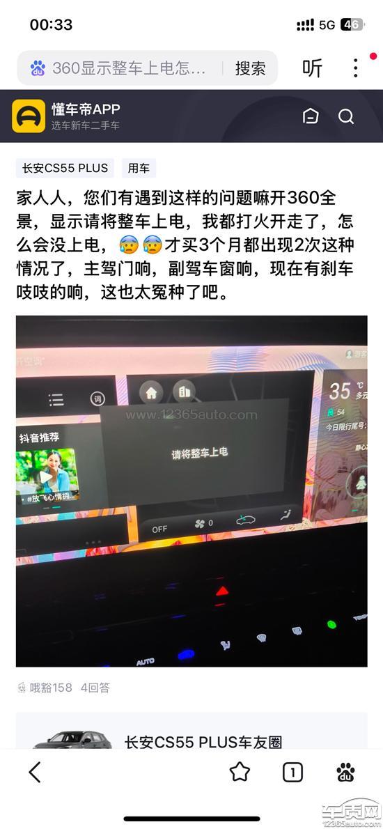 长安CS55 PLUS倒车影像无法使用 360影像故障