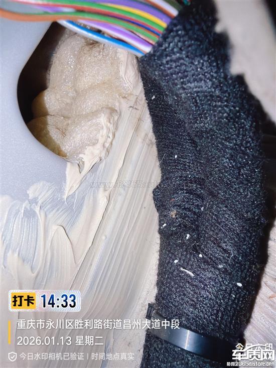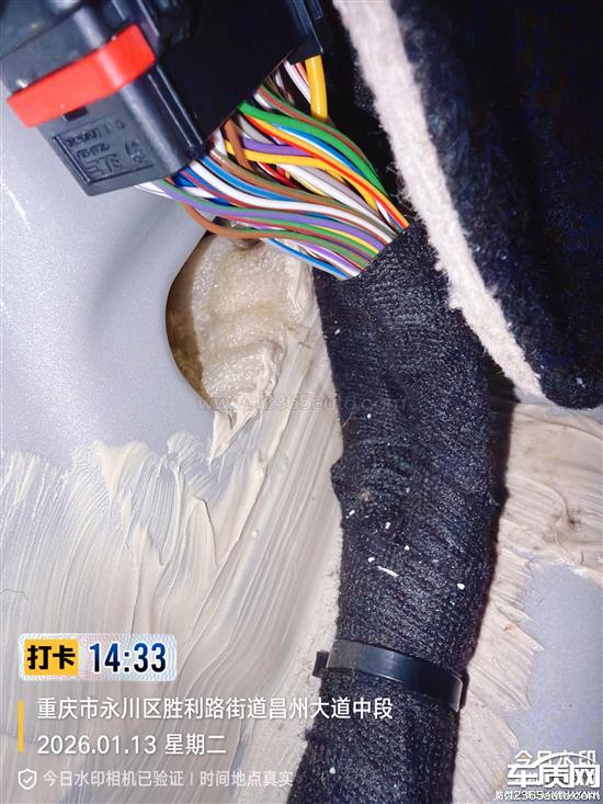 车辆前机舱,出厂钣金连接处打胶有漏洞,导致驾驶位漏水,而线束位置也存在水泡,存在严重质量问题。
